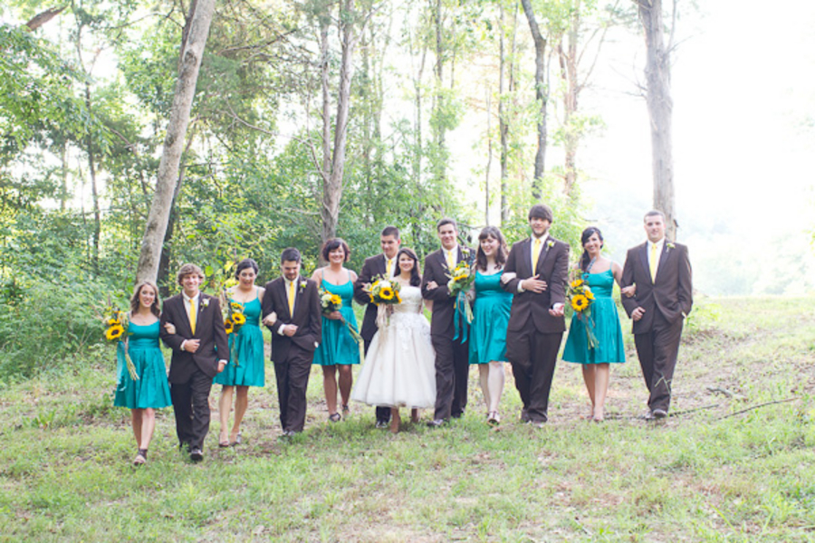 From the bride, Cynthia: A description of the day? I would say southern & family oriented and original with a southern rustic flare. I've always known that sunflowers would be a main part of my wedding ever since I was little. My mother has always grown them in our backyard. The land where we got married in Russellville has been in my family for 7 generations and the bridge was made by the Roanoke Bridge Co. Its over 100 years old. Our focus was to make it memorable and fun. Something different than what people expected. I found most of our stuff like paper and fabric, bottles, and the bunnies from Hobby Lobby. In the end I think what made it special to us was all the hard work we had put in TOGETHER and all the hard work we had seen our friends and family put into it. It meant so much more to us because of that.